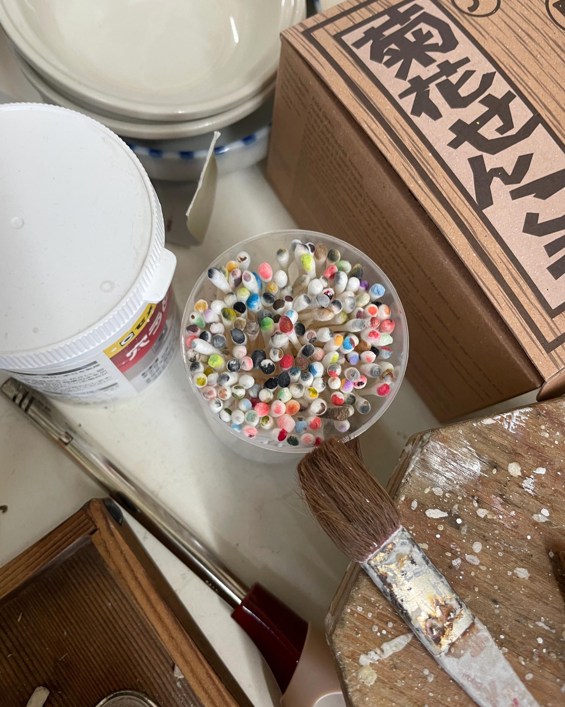 Here are boxes of the handcarved wooden moulds that Furukawa-san uses. Different pieces are put together to create different characters or variations of them. A bit like Mr Potato Head!