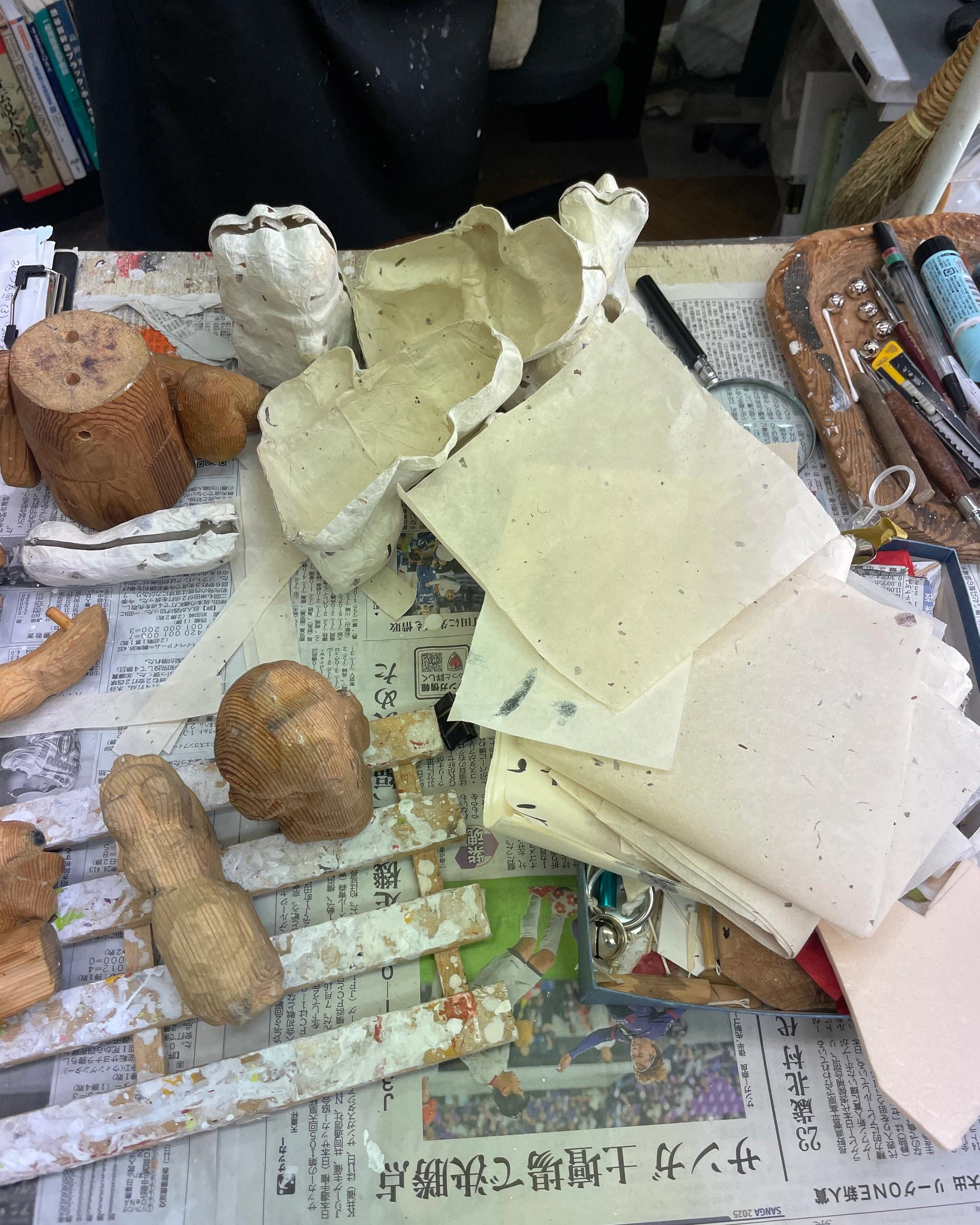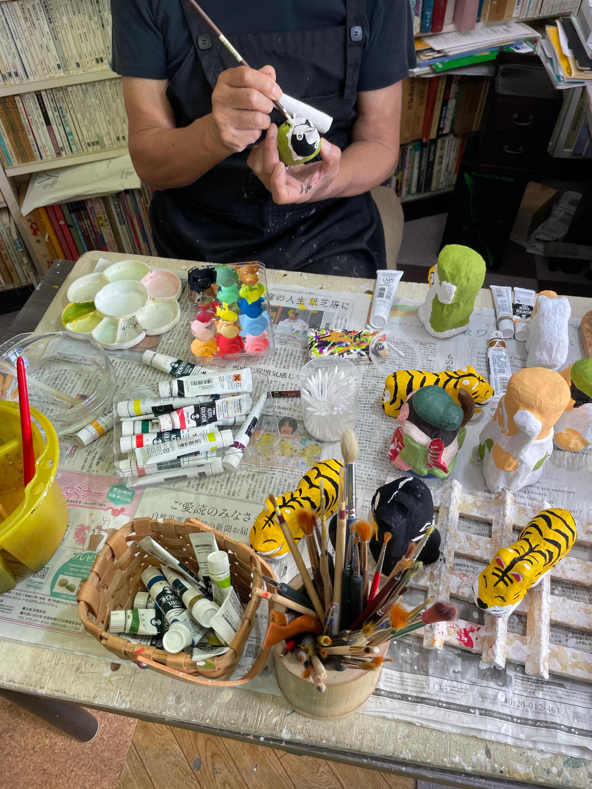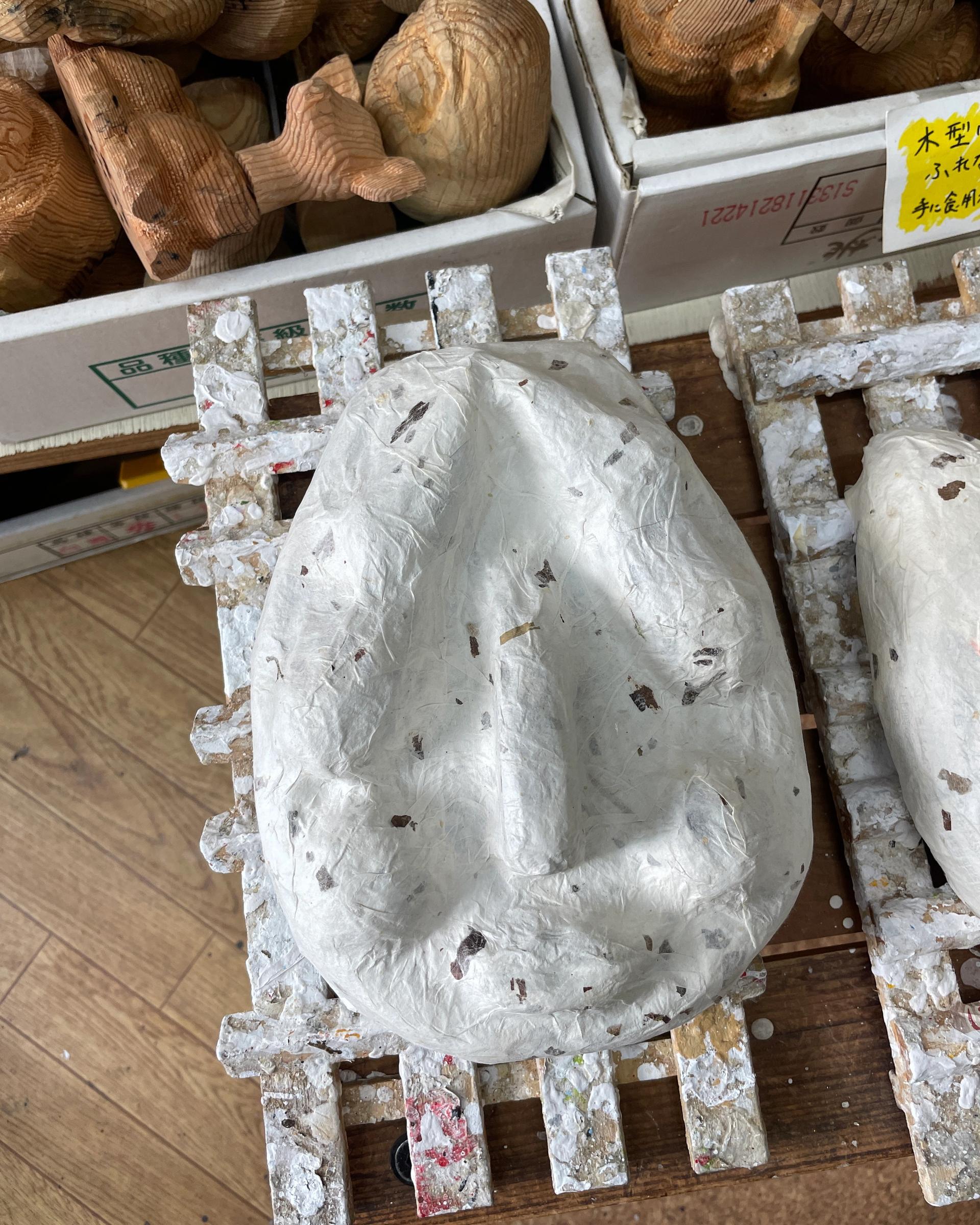 Each piece of hariko has five layers, that all need to dry before applying the next. It is a time consuming craft.