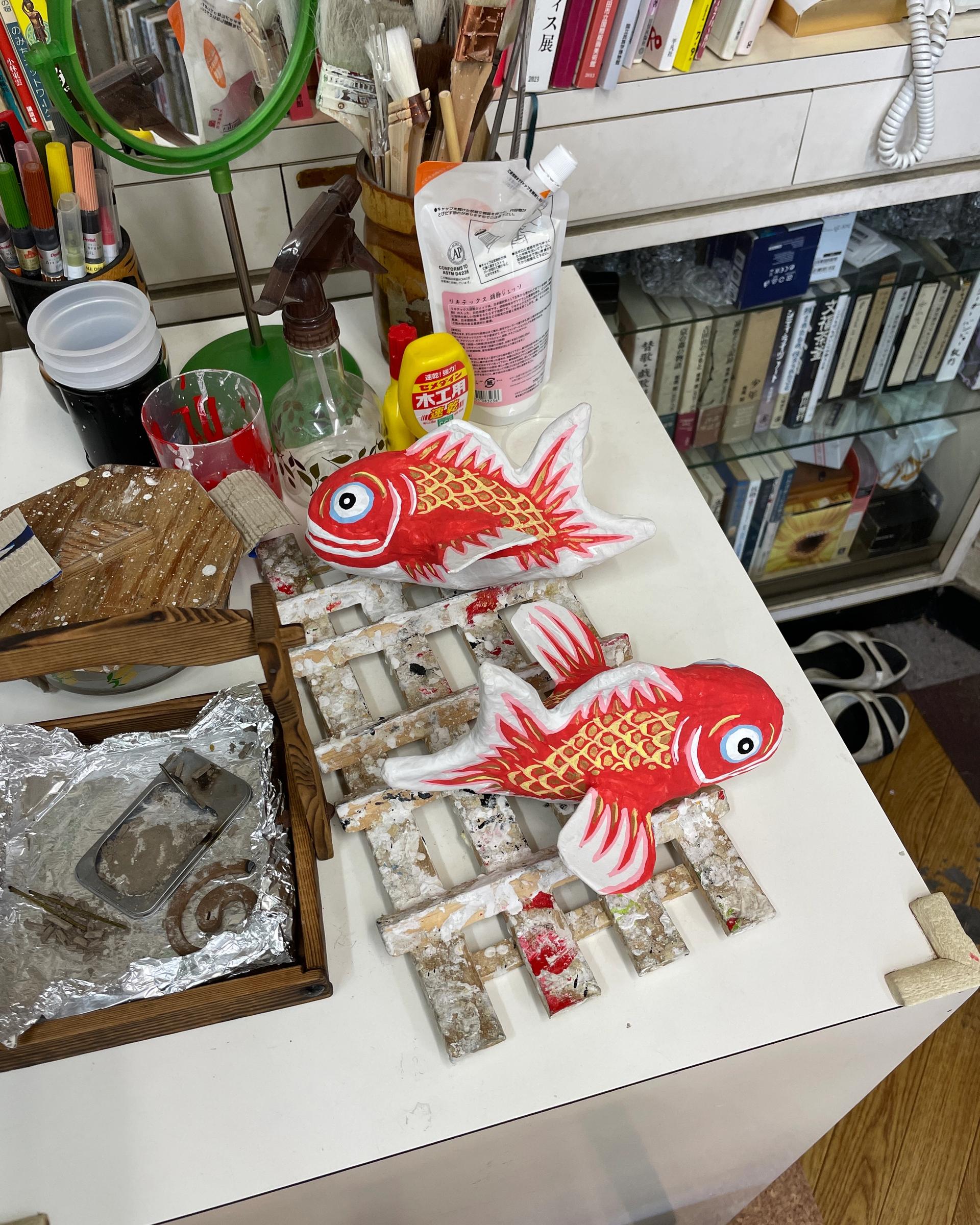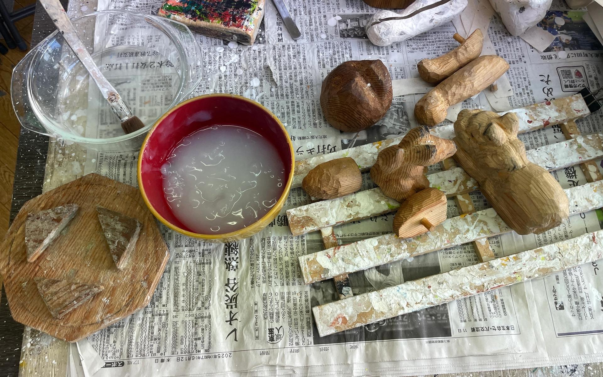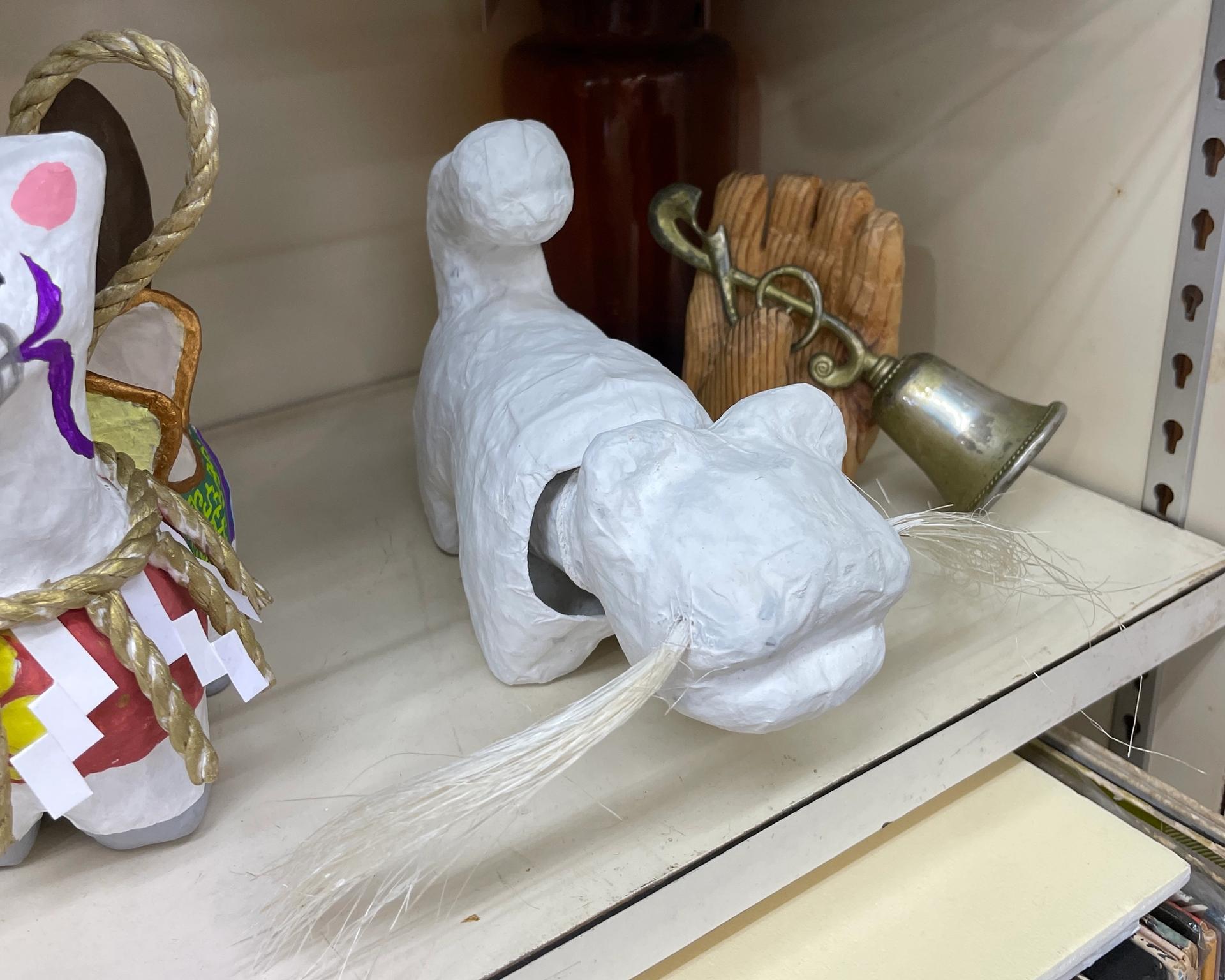 Each piece of hariko has five layers, that all need to dry before applying the next. It is a time consuming craft.