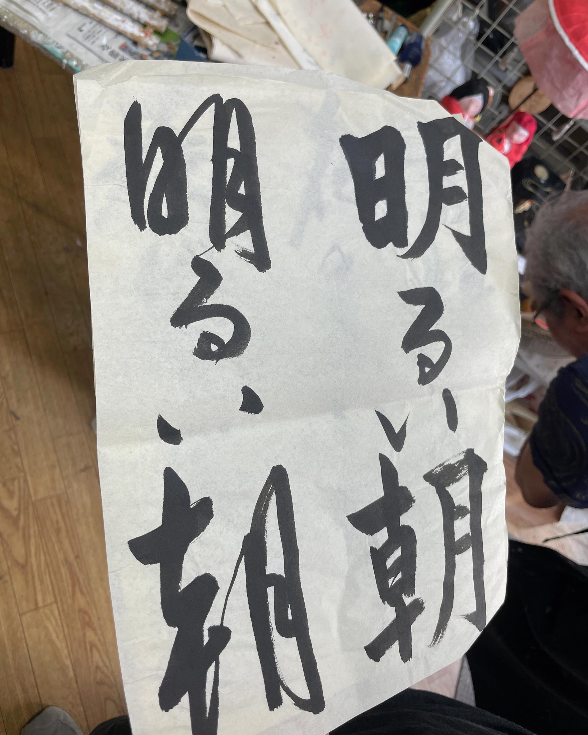 Furukawa-san uses different types of paper. All are washi paper. For some of the layers he uses recycled paper that students have used to practice Shodo (traditional Japanese Calligraphy). He gets these from his friend that is a children's Shodo teacher.