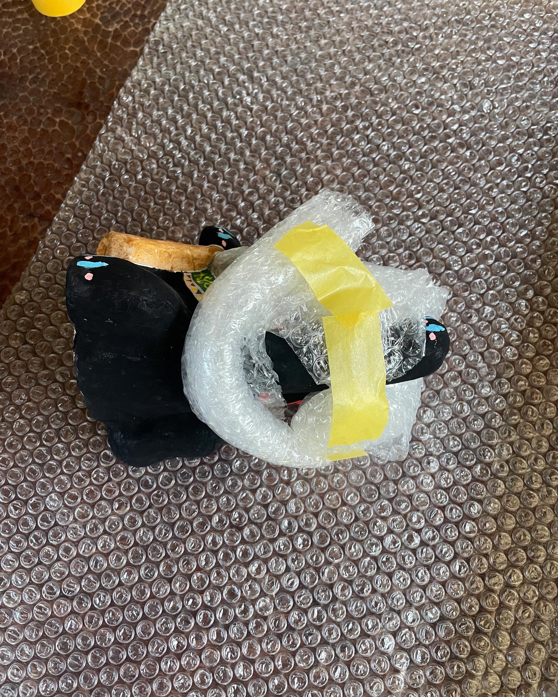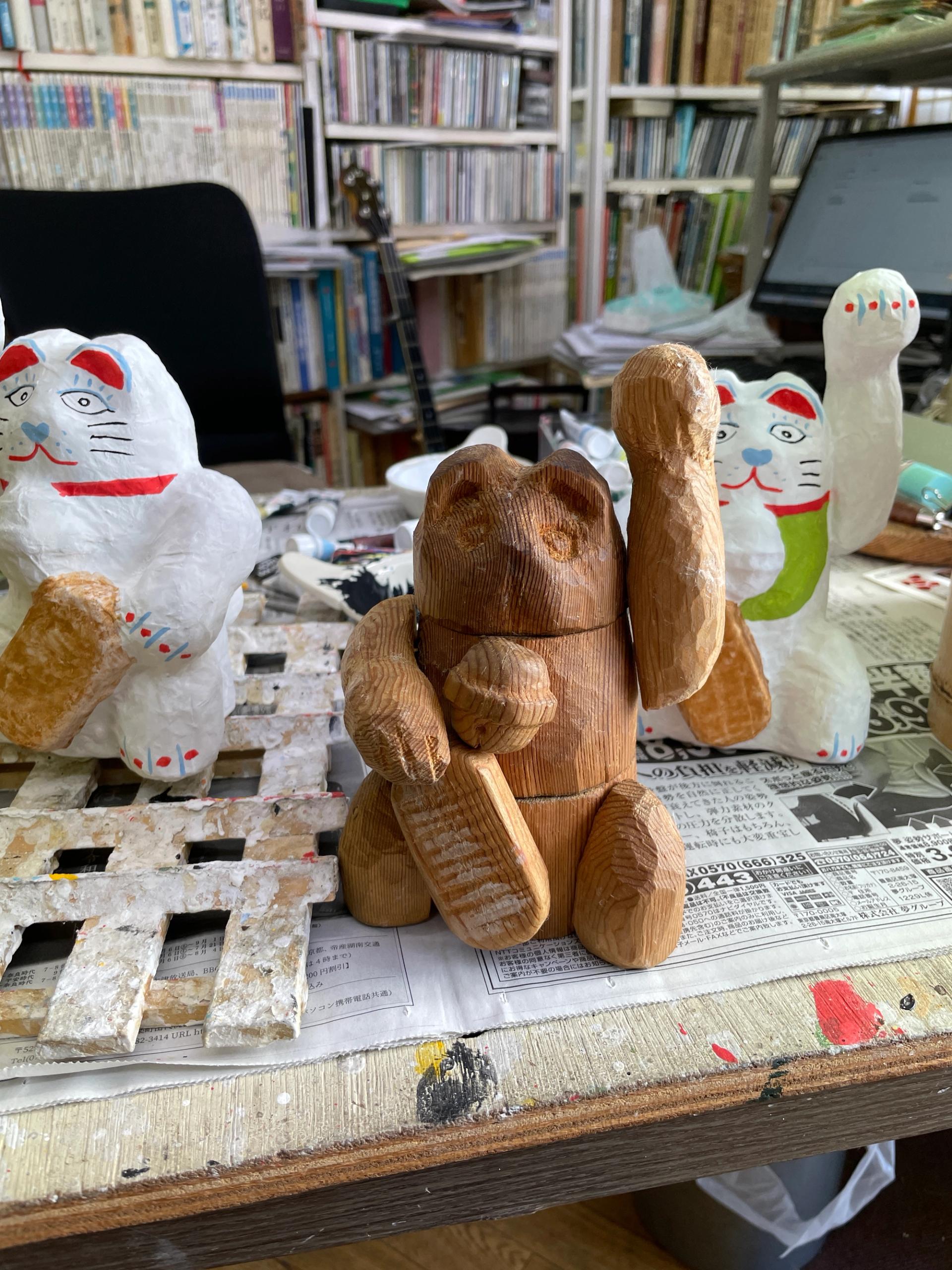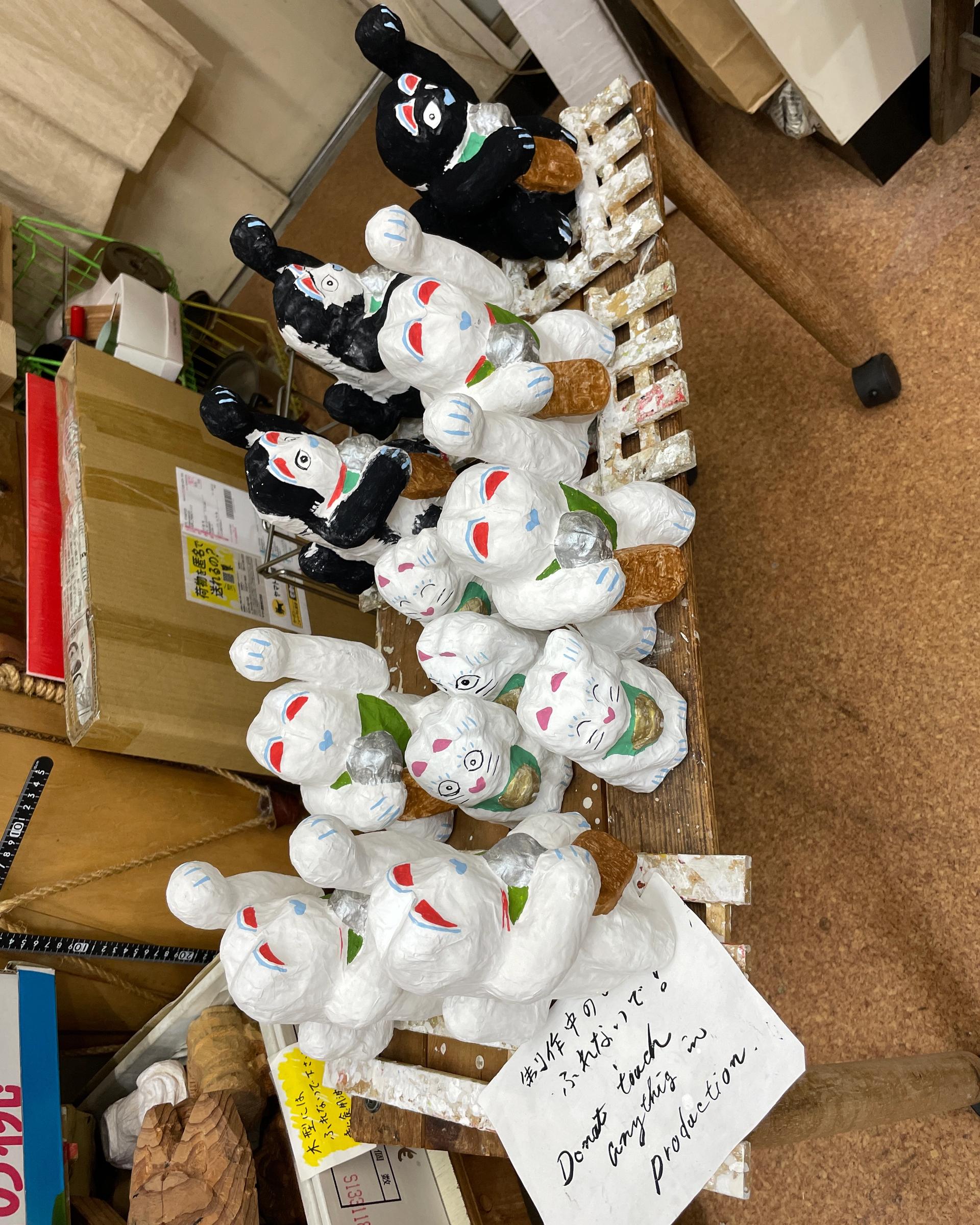 Furukawa-san changes the cat's waving arm on the mould from left side to right side. Left and right arm waving have different meaning in Japanese culture.