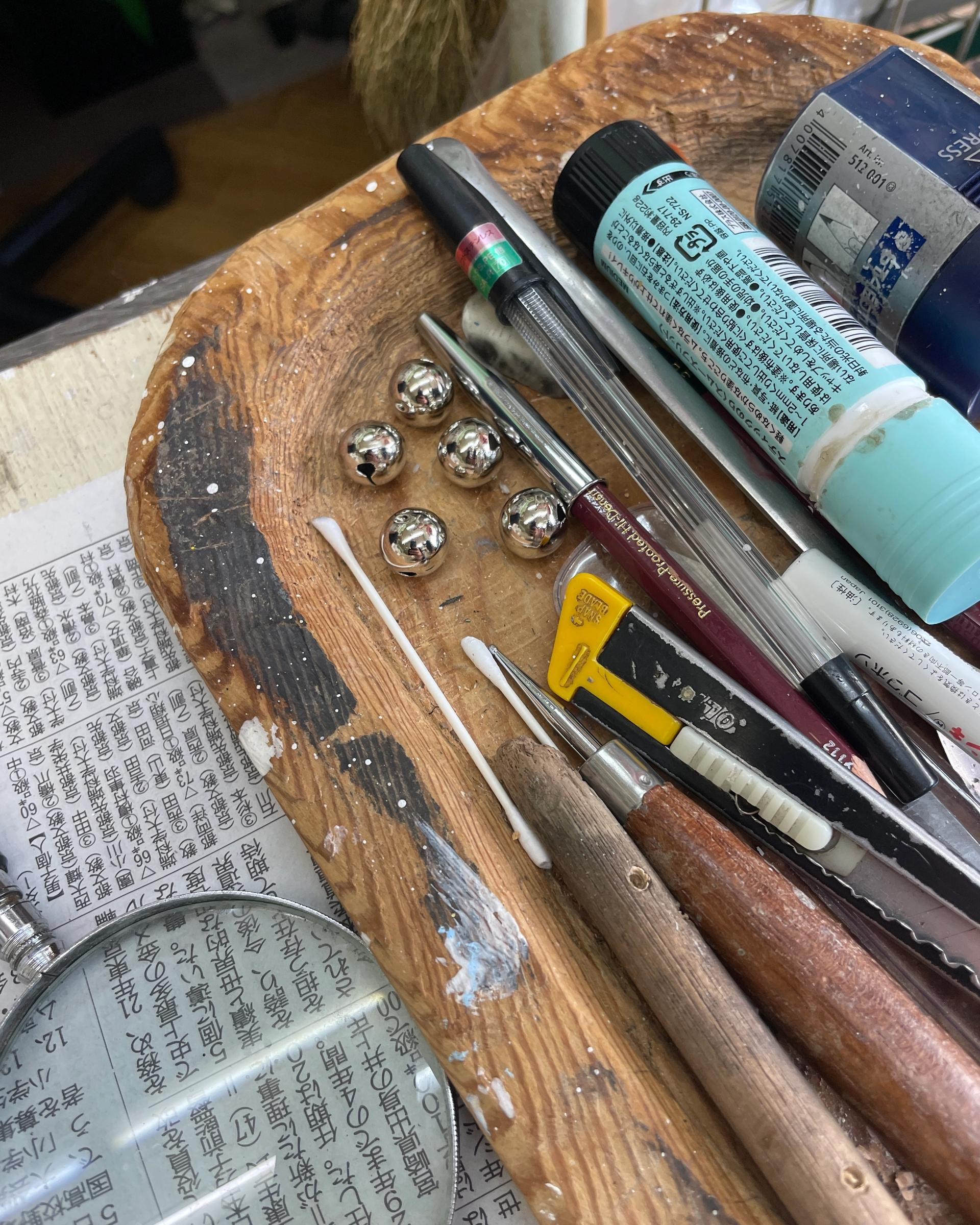 The hariko ornaments have little bells inside them. They make a very sweet jingle when picked up. Here are the little silver bells that Furukawa uses. You never see these – they are enclosed inside the ornament.