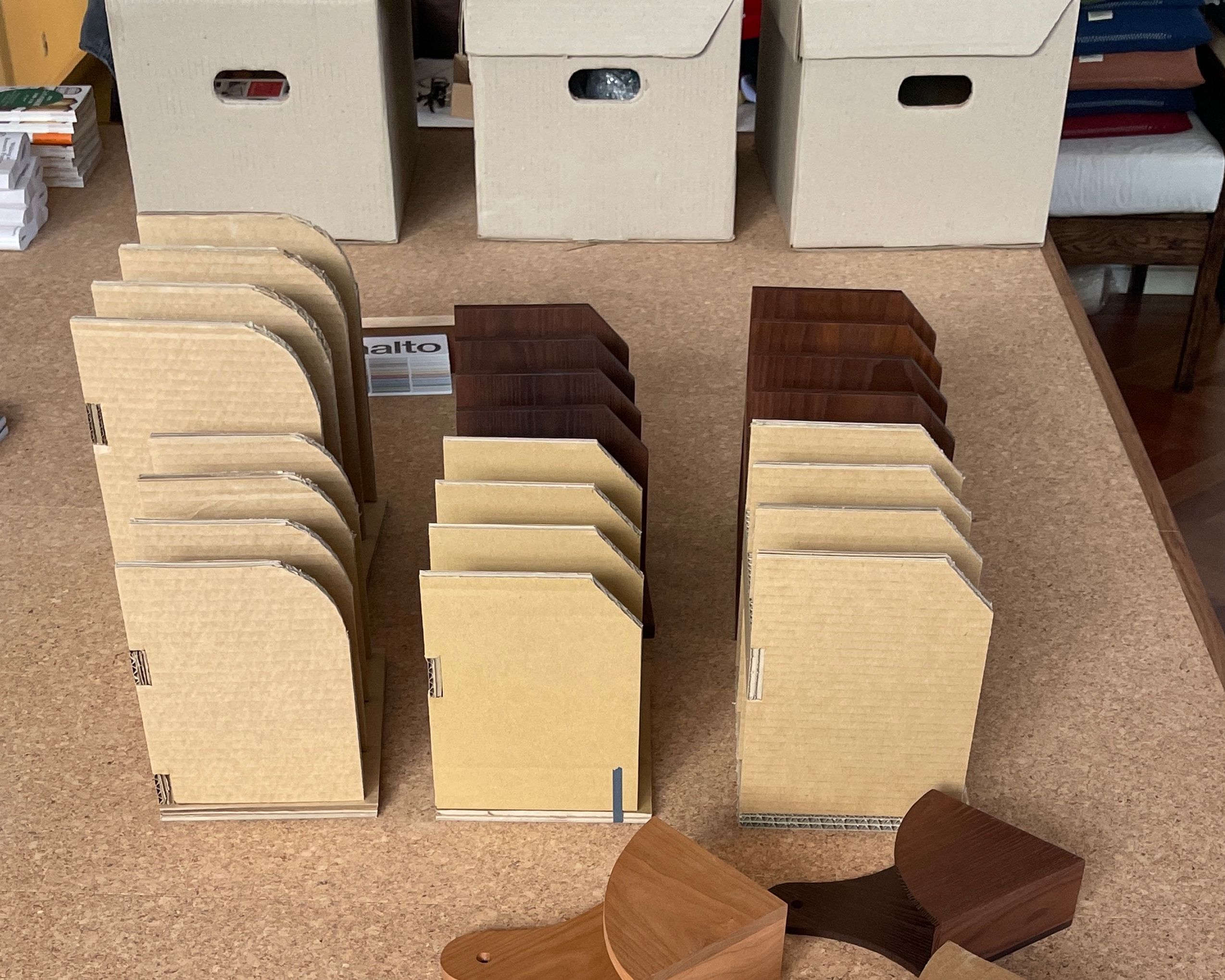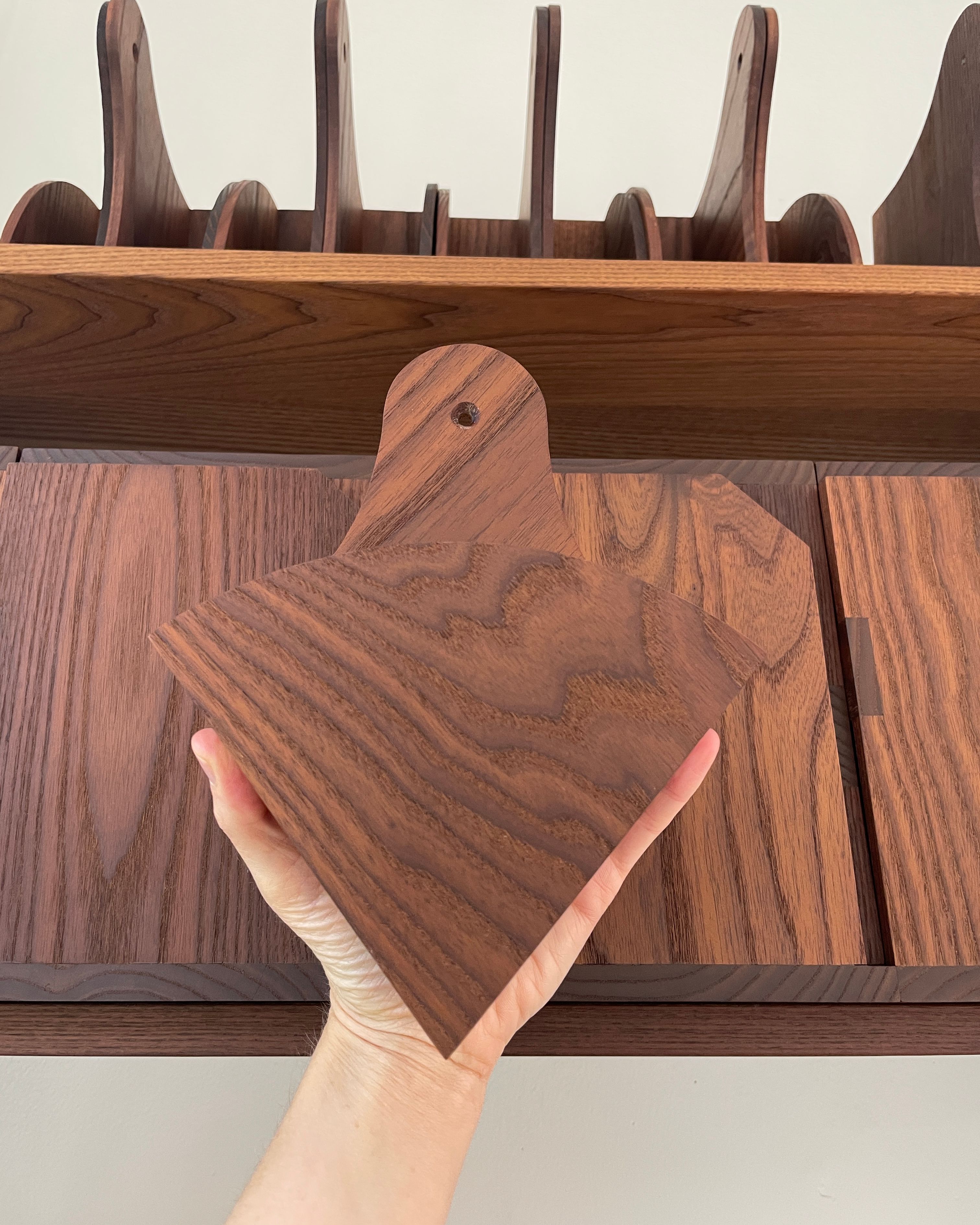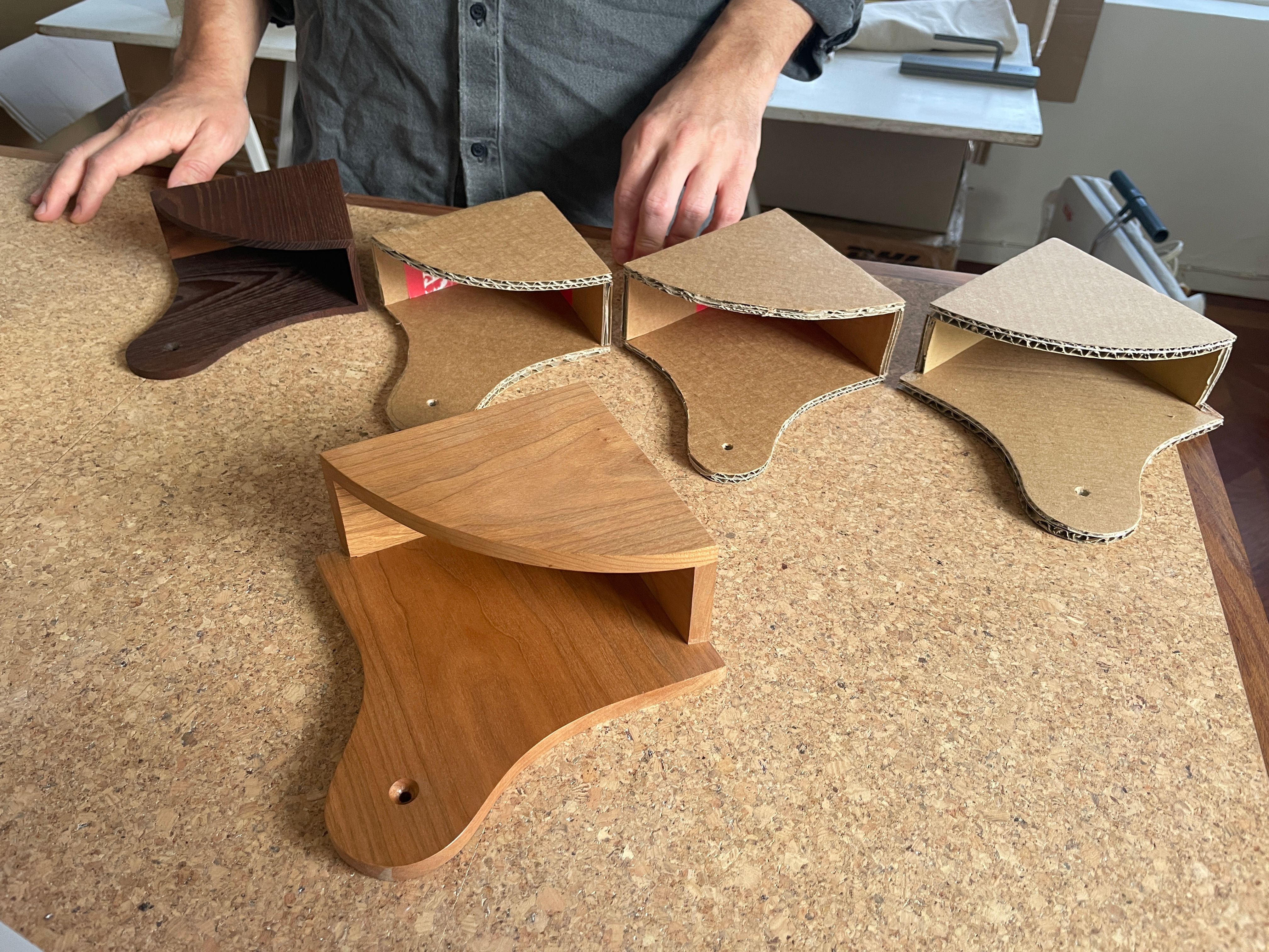 We went through six different samples of the Book Racks before landing on the final design. Mason played around with the thickness of the wood, the spacing of the slots, the height and width — even the base got tweaked a few times to make sure it felt grounded. At the same time, Mason was trying to make the most of the material sizes to avoid any unnecessary waste.