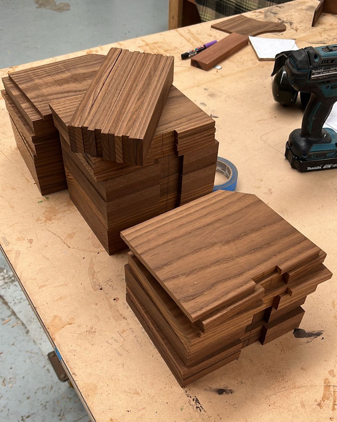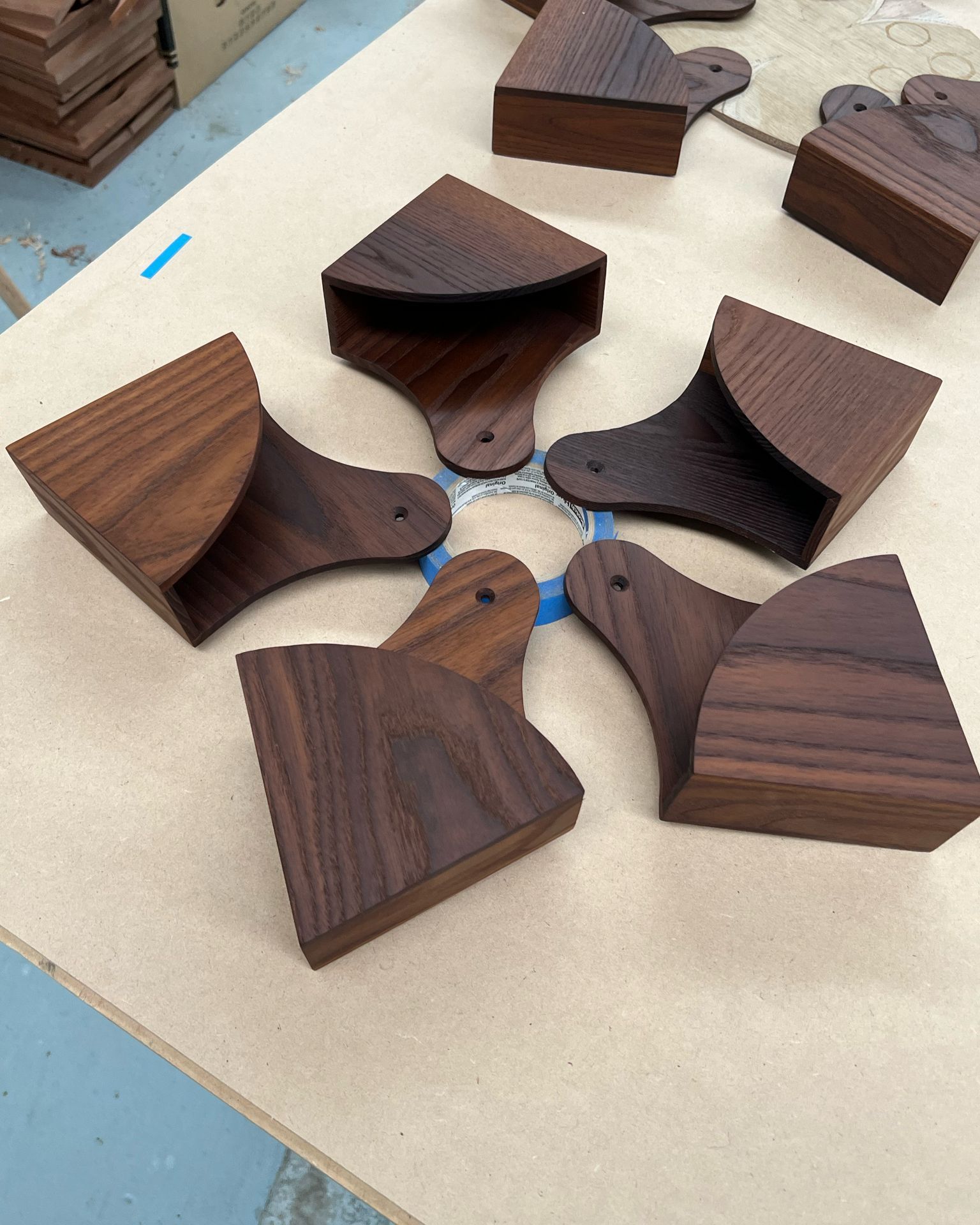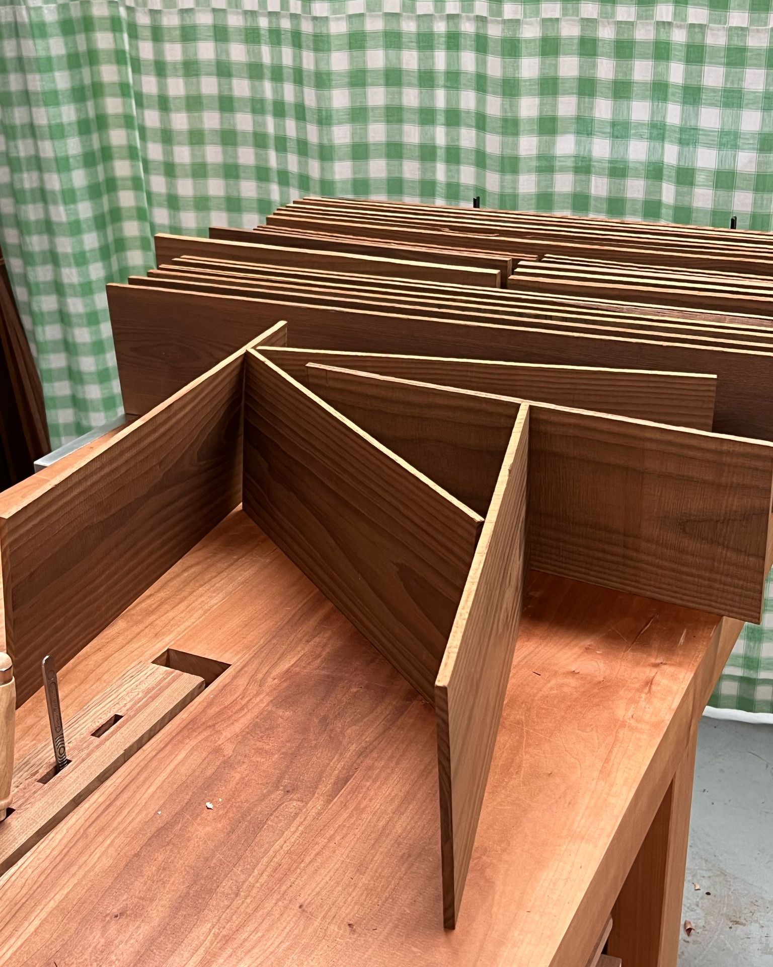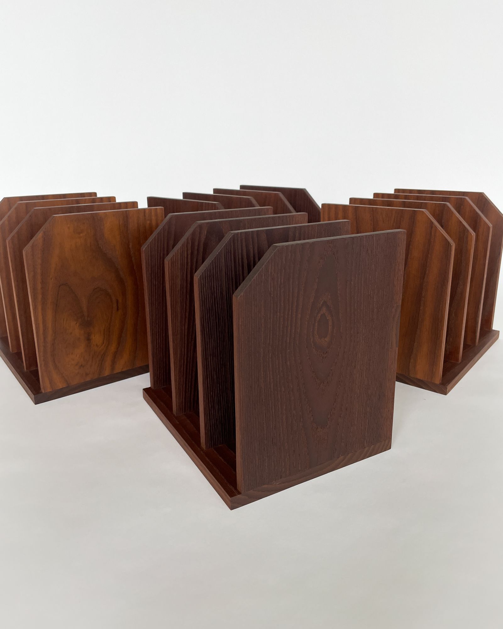 We went through six different samples of the Book Racks before landing on the final design. Mason played around with the thickness of the wood, the spacing of the slots, the height and width — even the base got tweaked a few times to make sure it felt grounded. At the same time, Mason was trying to make the most of the material sizes to avoid any unnecessary waste.