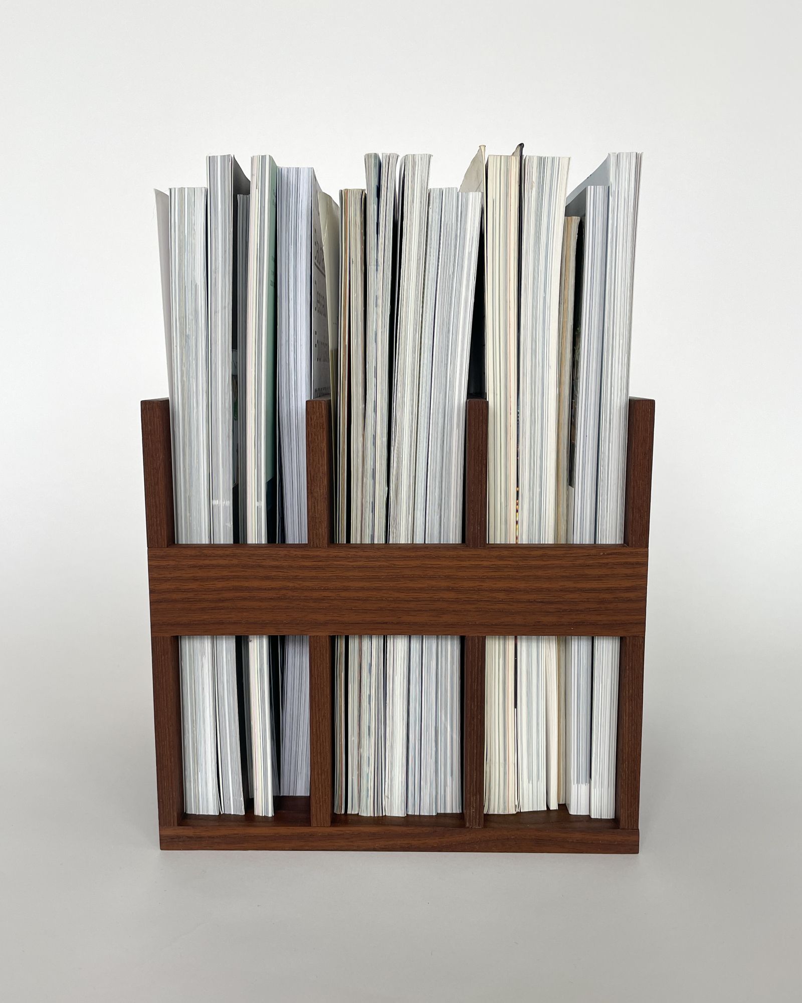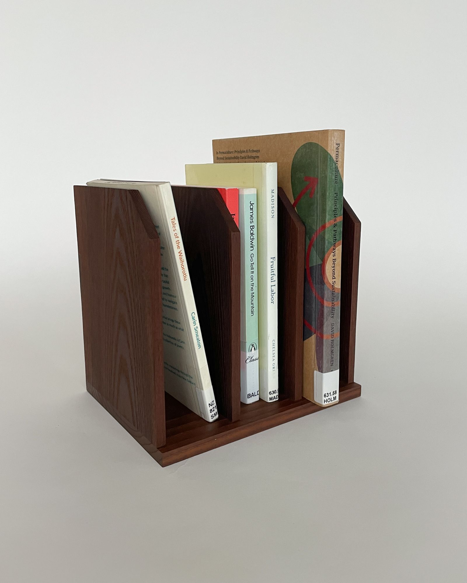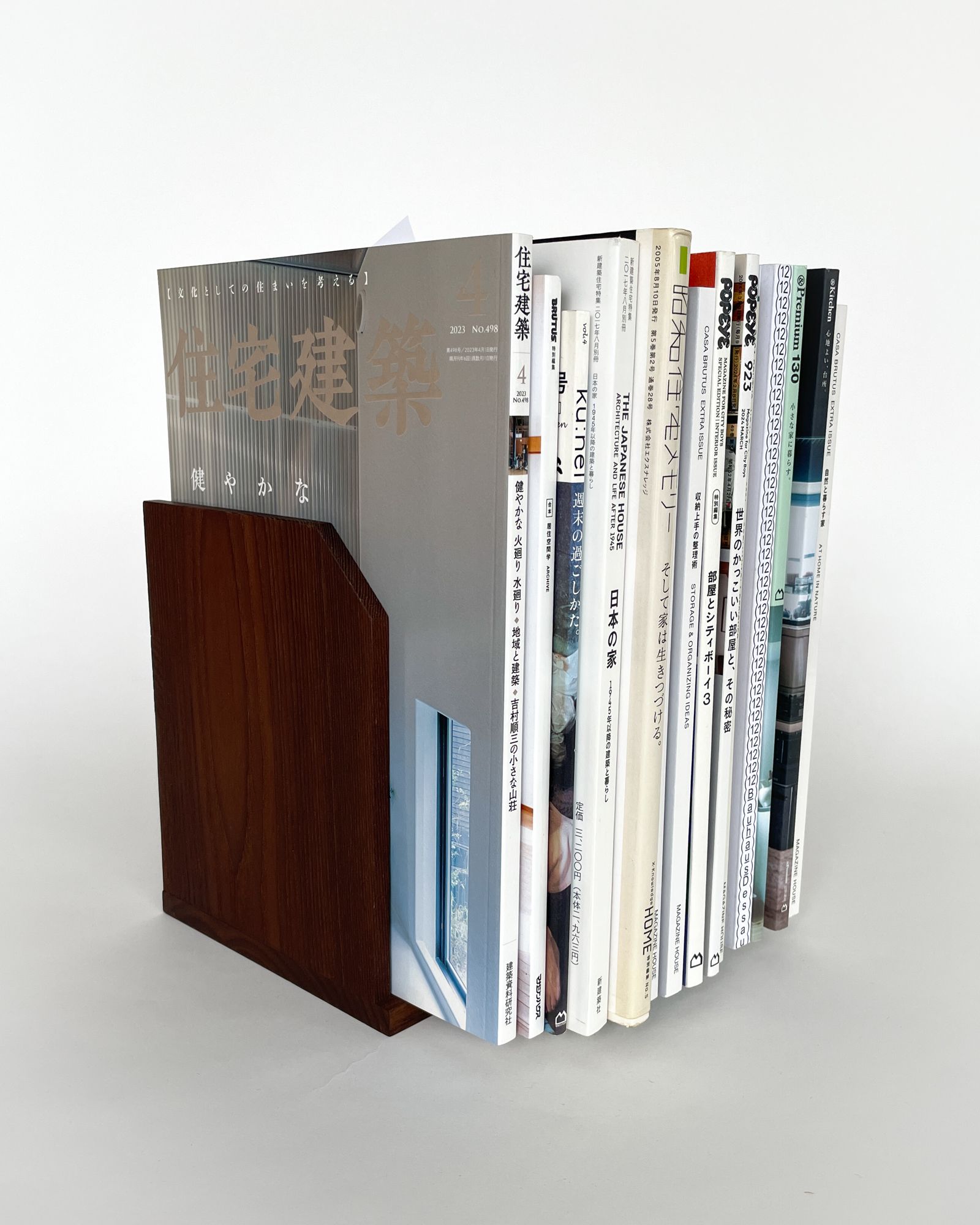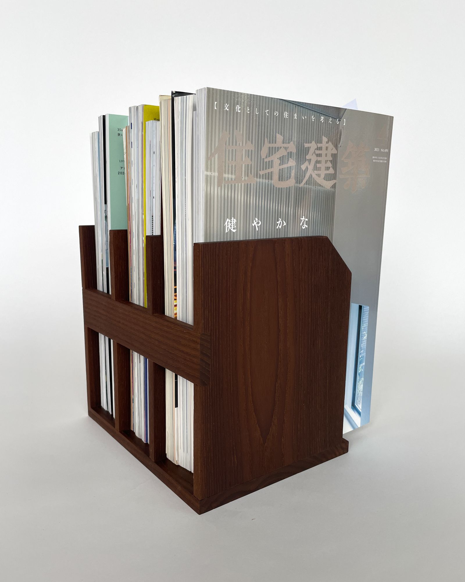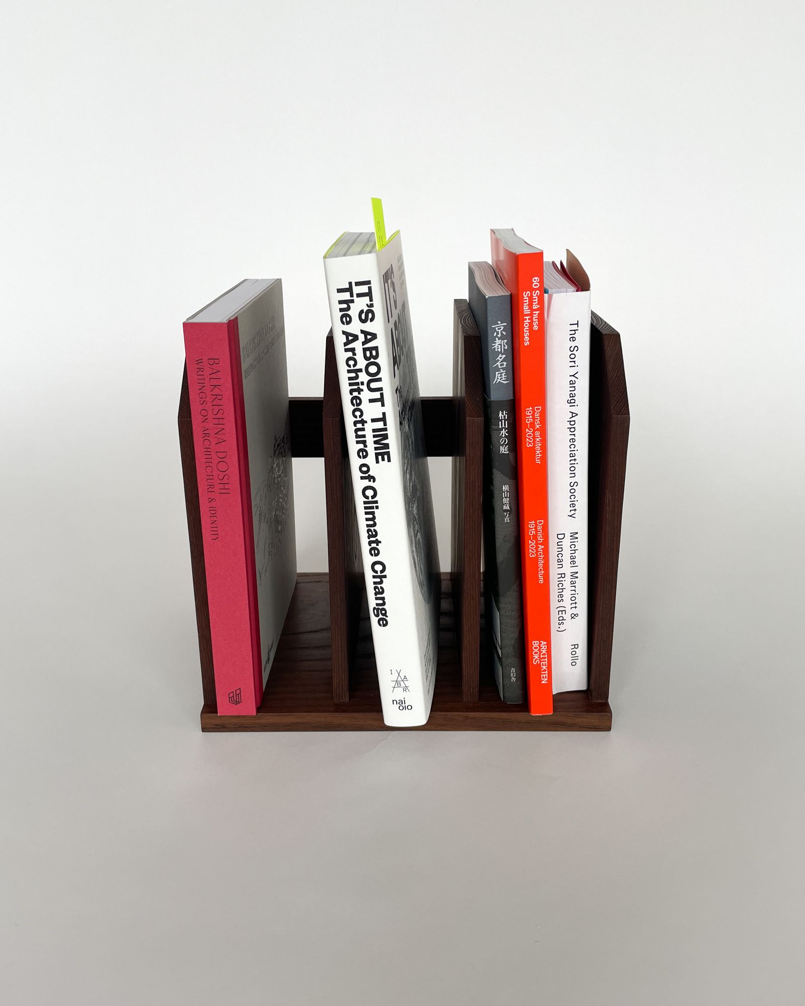 Mason originally got the inspiration to design a bookrack after seeing similar objects at antique markets and temples in Kyoto.