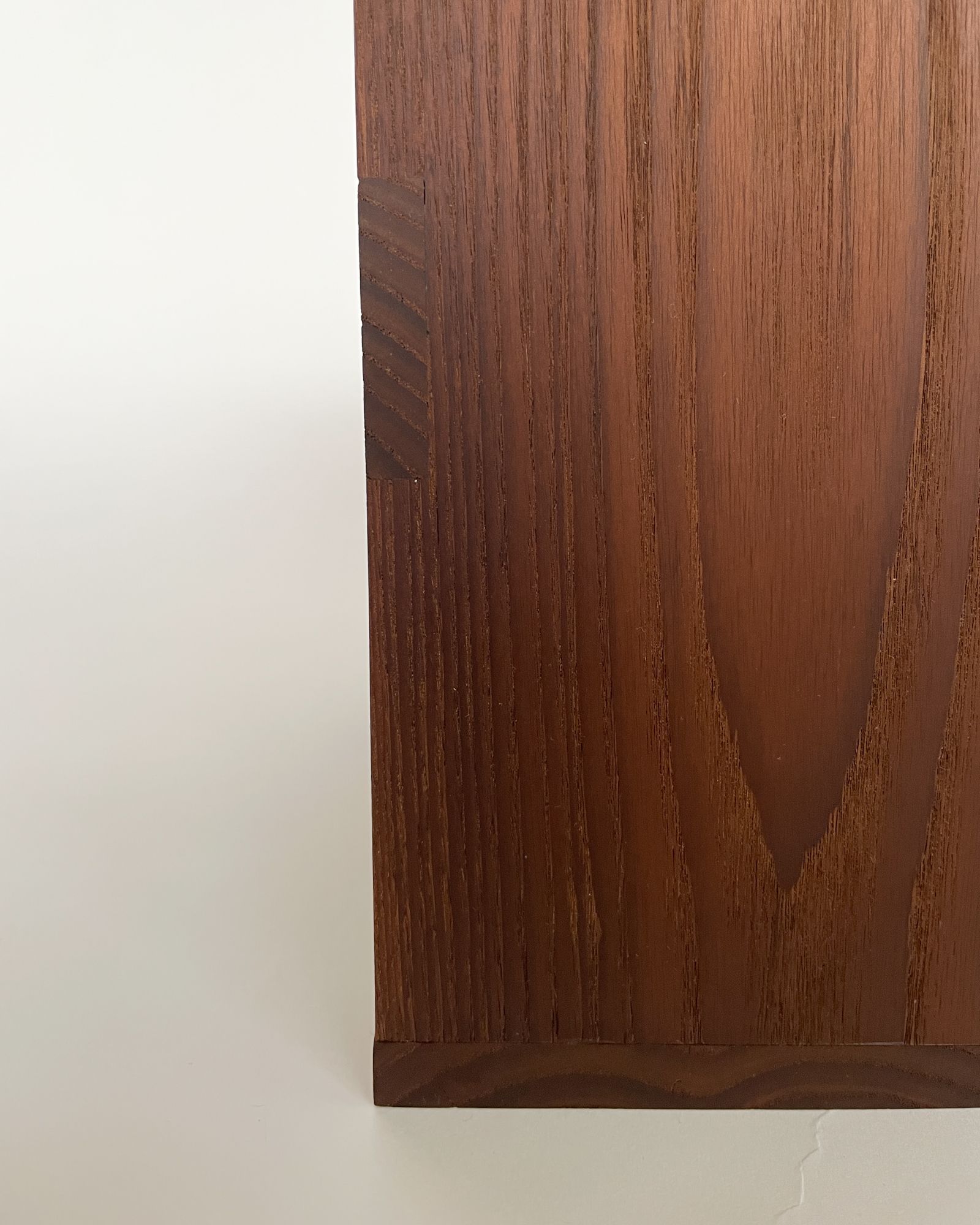 Roasted ash is heat-treated to help stabilise the timber, making it more durable and less prone to movement over time. This roasting process not only gives the wood a rich, dark tone and a beautifully aged, antique feel — it also enhances the natural grain, bringing out incredible patterns that make each piece unique & in a way already has history already built in.