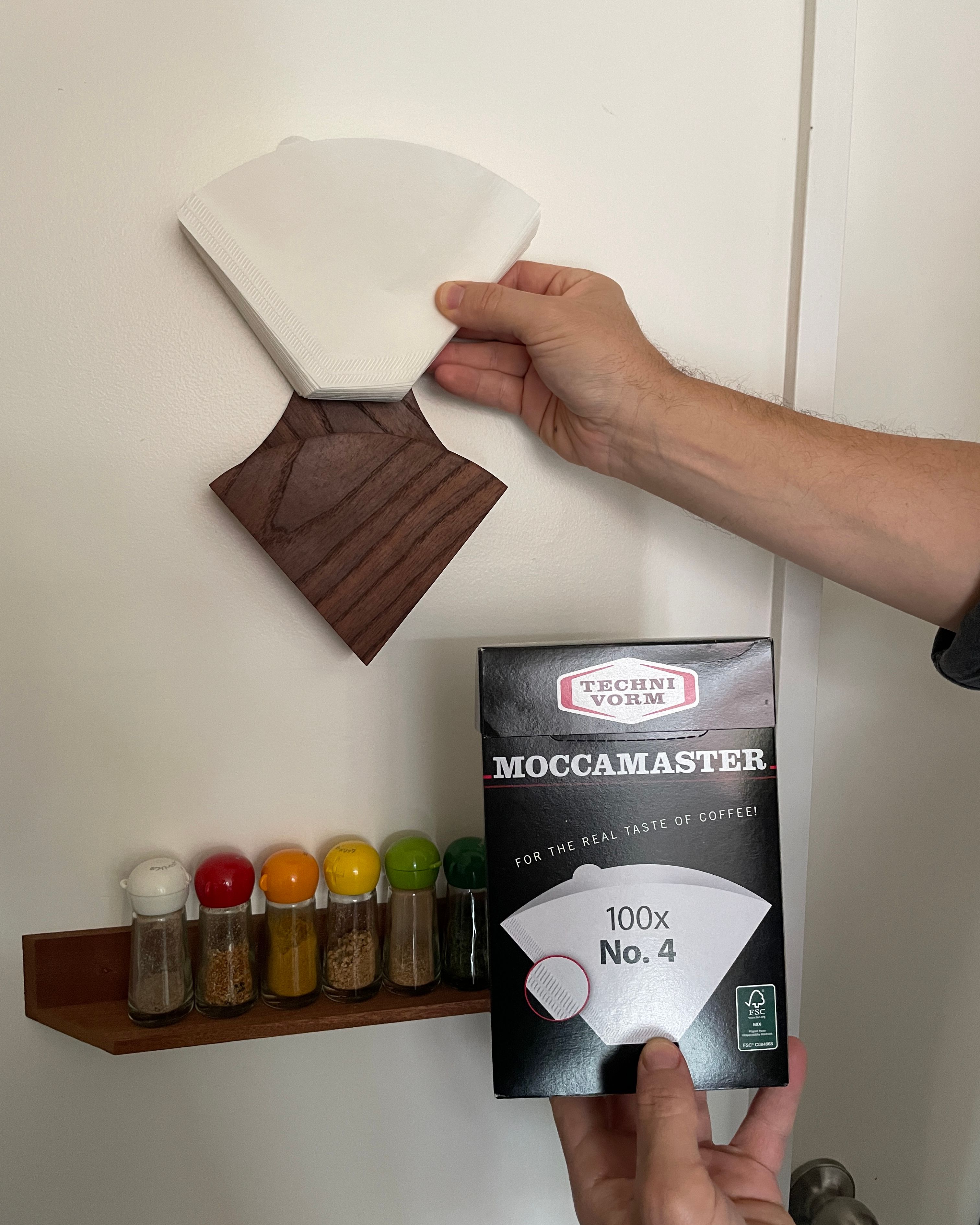 Here’s the story of how we made our new coffee paper filter holders. If you're also curious about the book racks, scroll down — we get into those a bit further along in the post :)