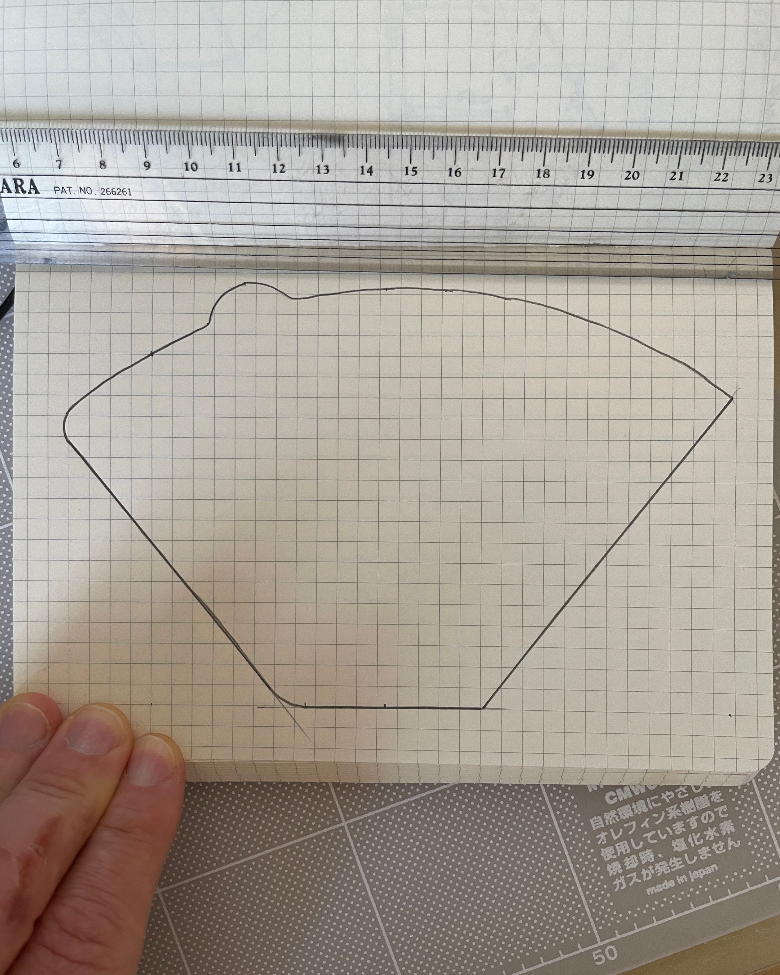 When we began designing the filter holder, Mason started by researching and tracing the most commonly used coffee filter paper sizes. An early reference we used was a filter paper from a coffee machine in the house we stay at during our trips to Kyoto — you can see the scan of it on the right.