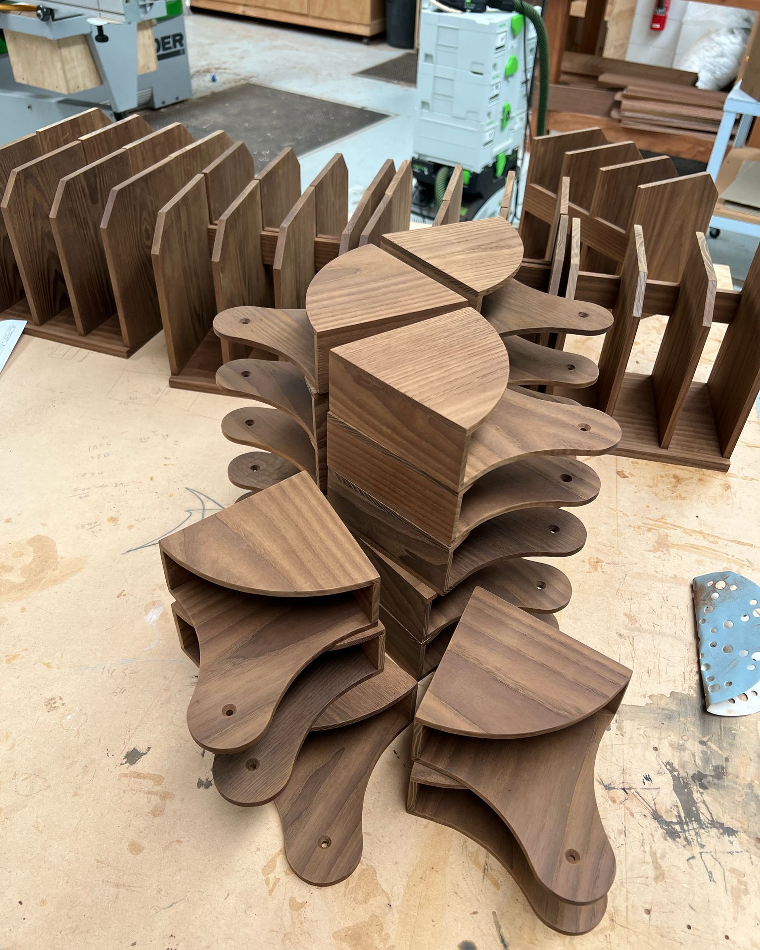 We worked closely with Emile while making these. Emile introduced us to roasted ash, which is the timber we decided to use for the new book racks and filter holders.