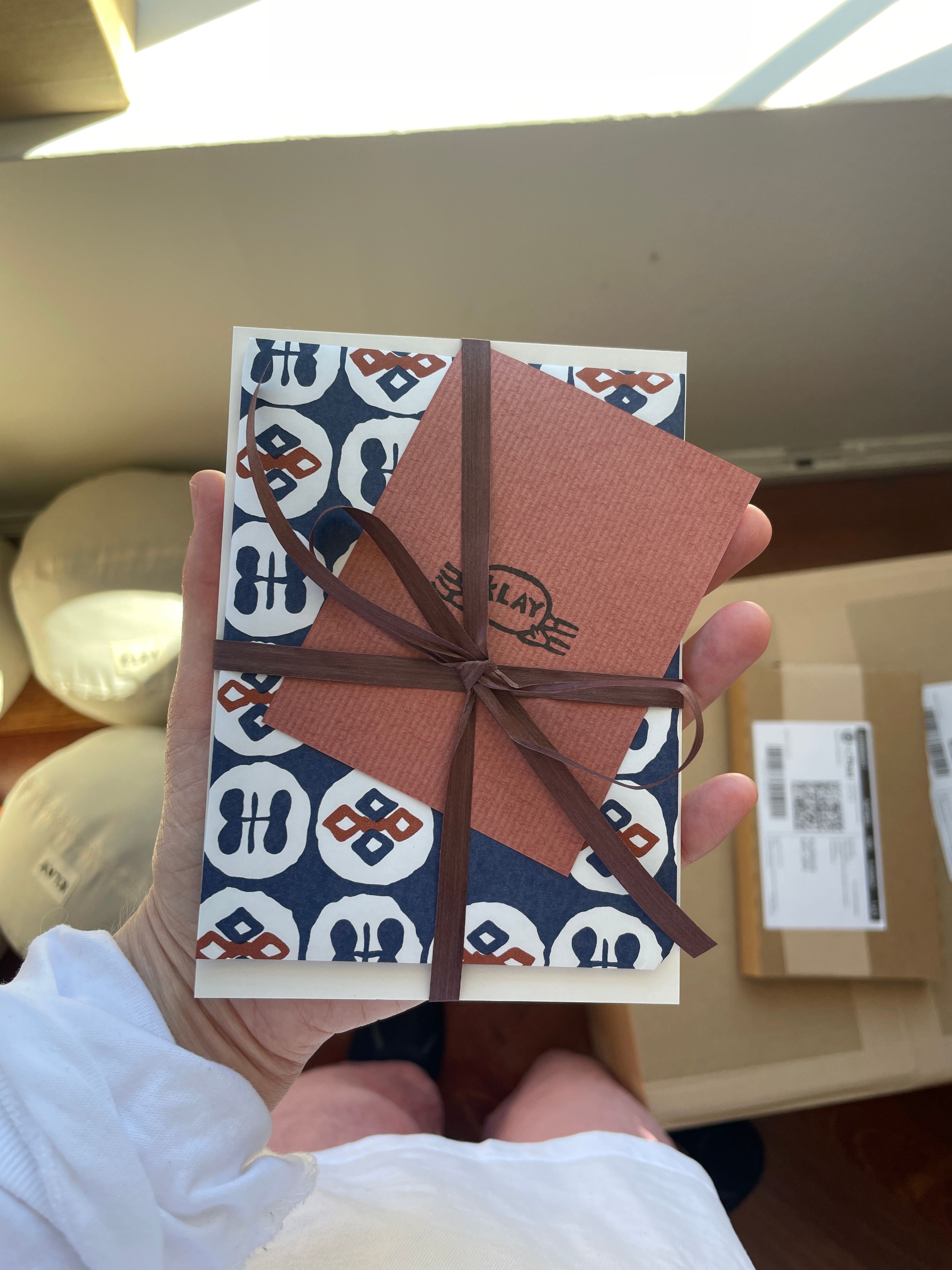 We sell both physical and digital gift vouchers <3 our physical ones were designed by Chloe Larkin, who designed our website. The compostable glassine envelopes were sewn by Kirsty using 100% cotton thread. We wrap each gift voucher in Japanese gift wrap that I brought back from Kyoto.