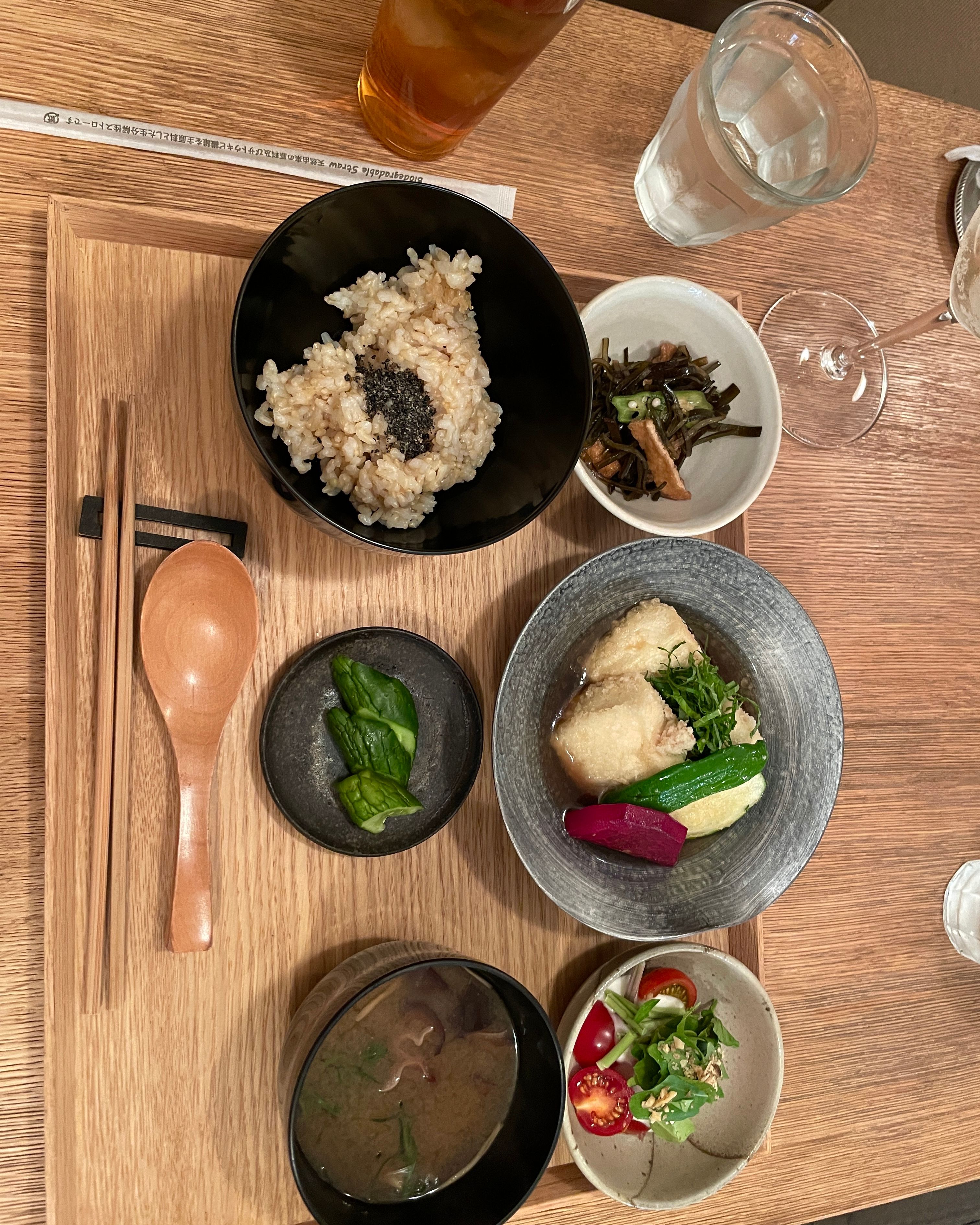 - Brown Rice (lunch) This is a vegan cafe that serves traditional Japanese food. It is owned by Neals Yard Remedies & they have a shop next door. I really enjoyed my lunch here & we had some yummy organic plum wine that we still think about.