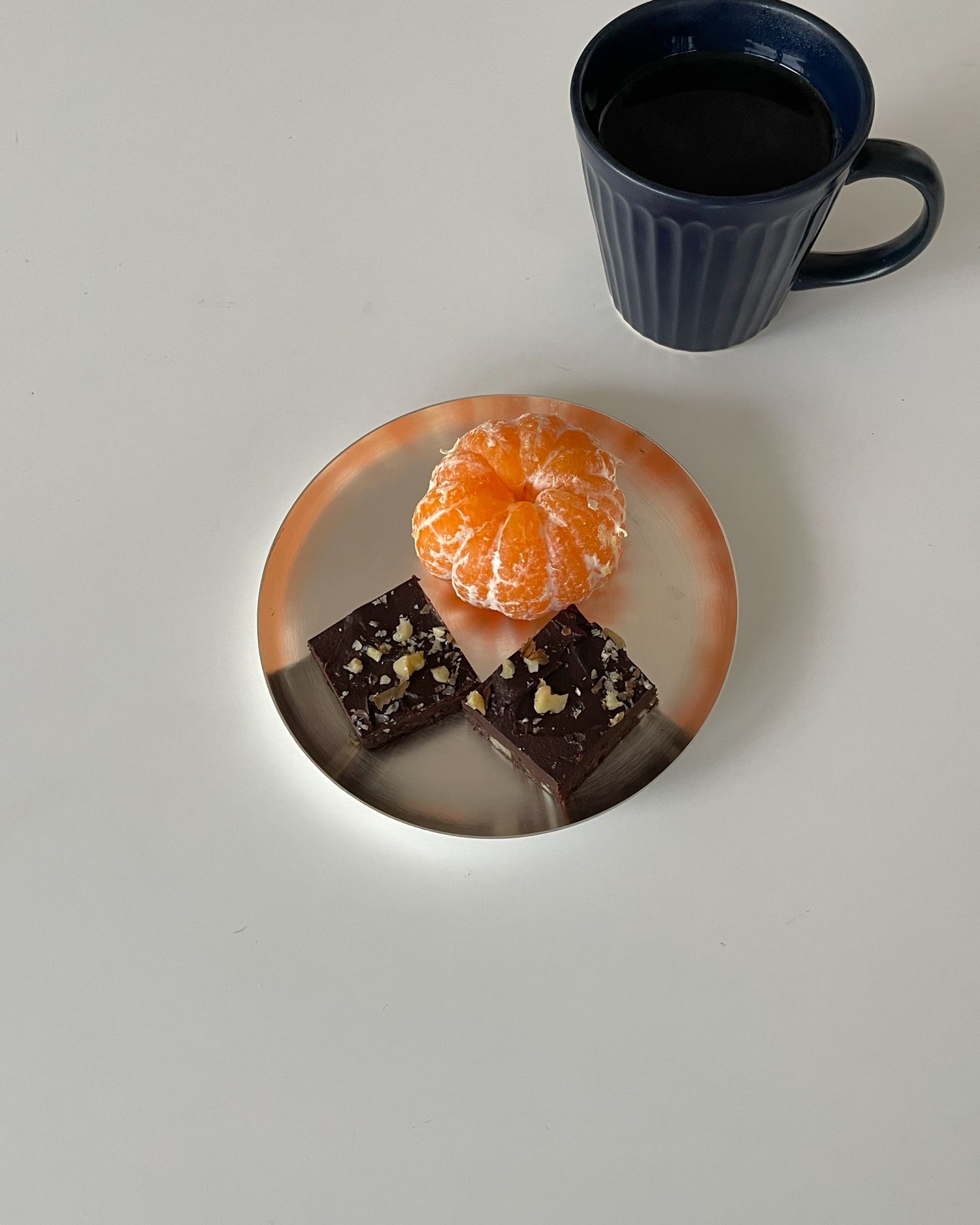 These sweet little plates are coated with real silver, which makes I think makes them feel special and have a bit of a ceremonial intentional feeling about it for snack time. They shiny silver reflects the colours of what is on the plate like a dazzling jewel.