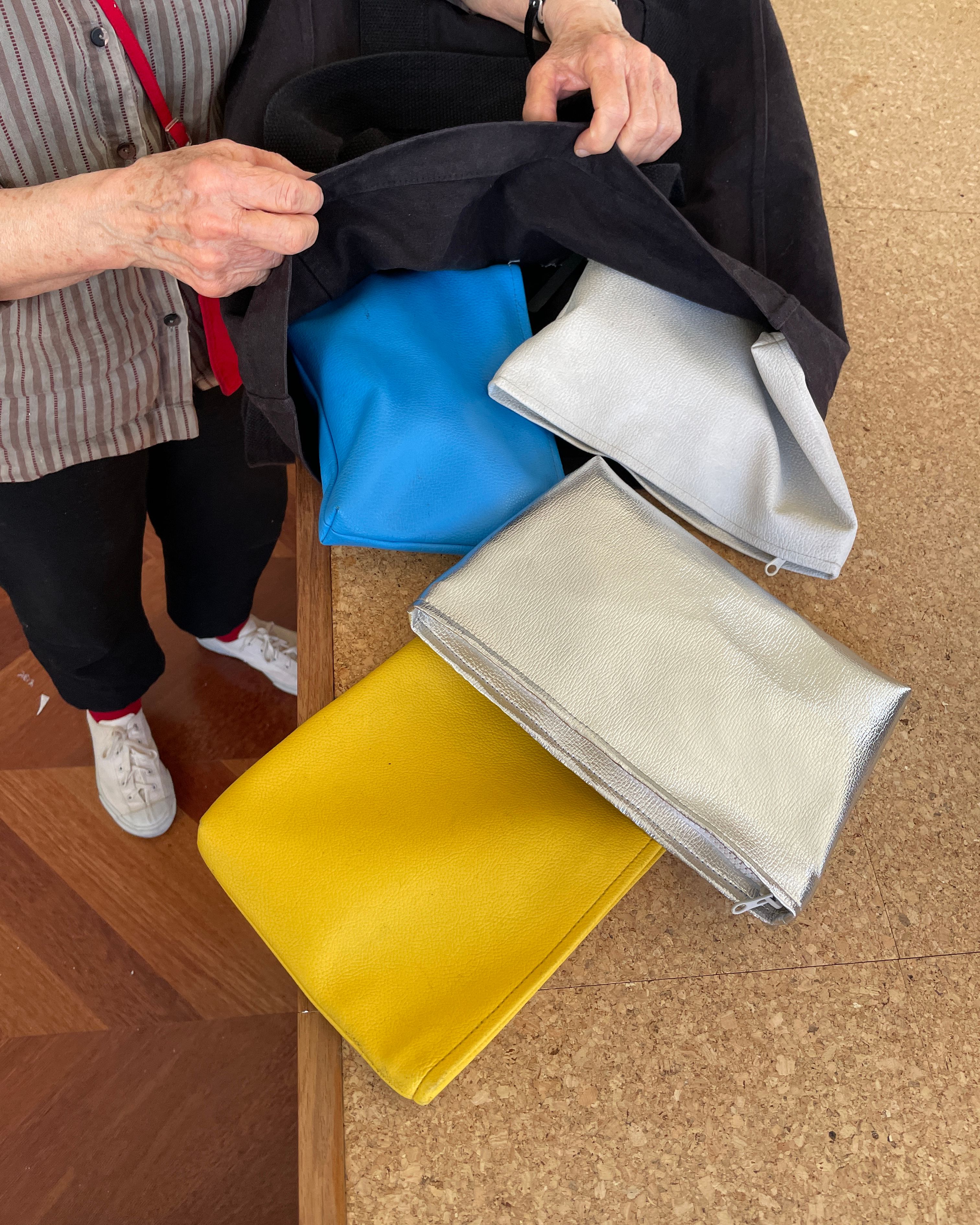 These pouches are so handy as bag organisers - a good gift for someone who carries heaps of stuff in their bag everyday and might need something to organise all that stuff. Kirsty's got FOUR of these pouches in her bag today :) one is her purse, one for her tools: scissors and thread and pliers etc and another for pencils & a Little Pocket Tape Measure and one for electronics & cables.