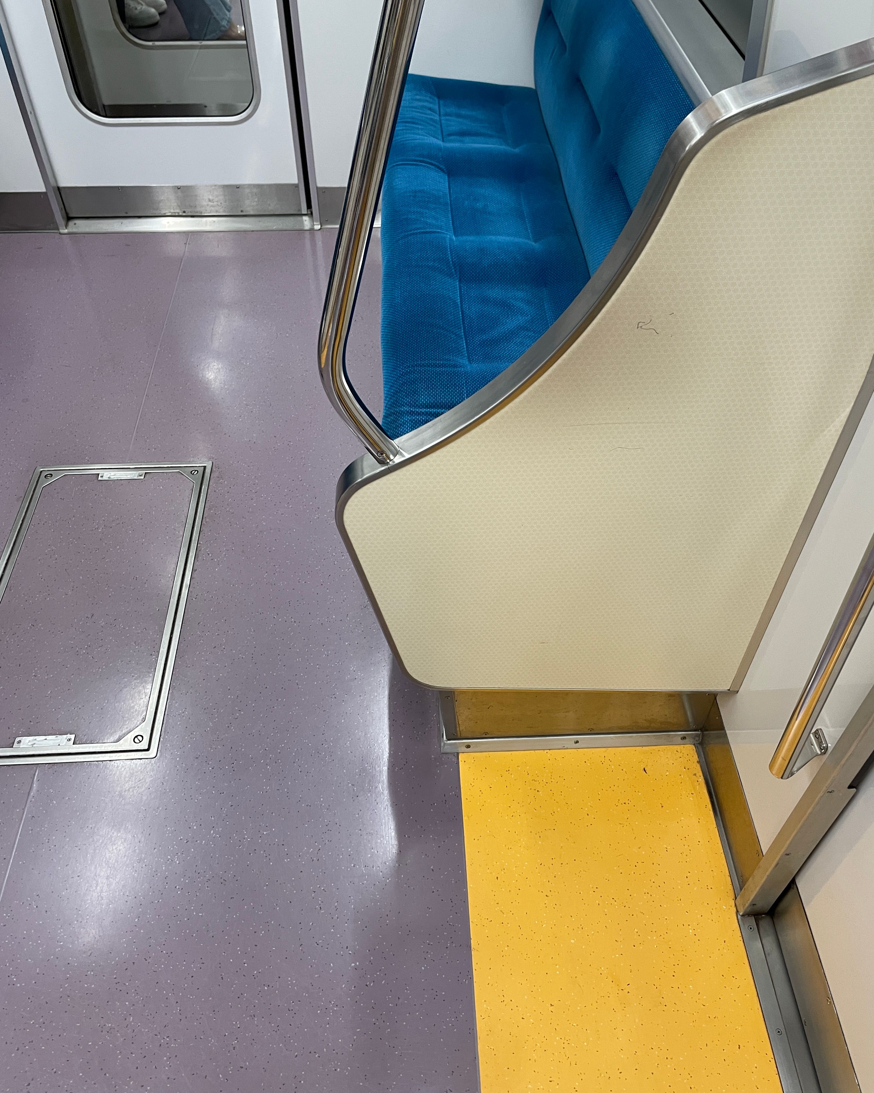 I saw purple a lot in Japan. Of course in temples, but also in modernist architecture, train stations & on trains, as carpet, noren curtains and grapes. Below are photos of some of the purple things I saw in Japan that reminded me of our Iris Purple Cushions.
