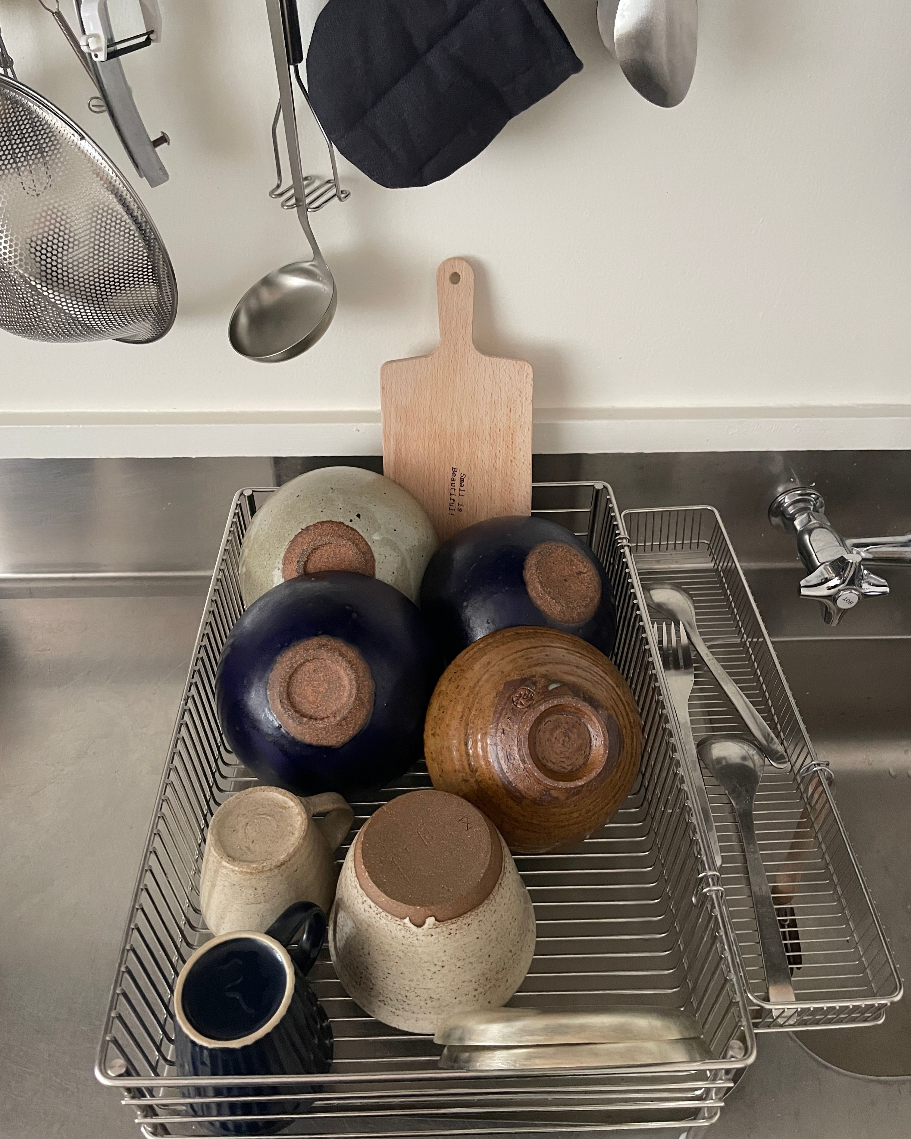 The giant white mugs we use were handmade by my friend Anna Hodgson, who also created the artwork of our first post card (which you can read about on this blog post here). The brown mug is from a lovely shop called Mingei-ten in the Japanese pottery town Mashiko.